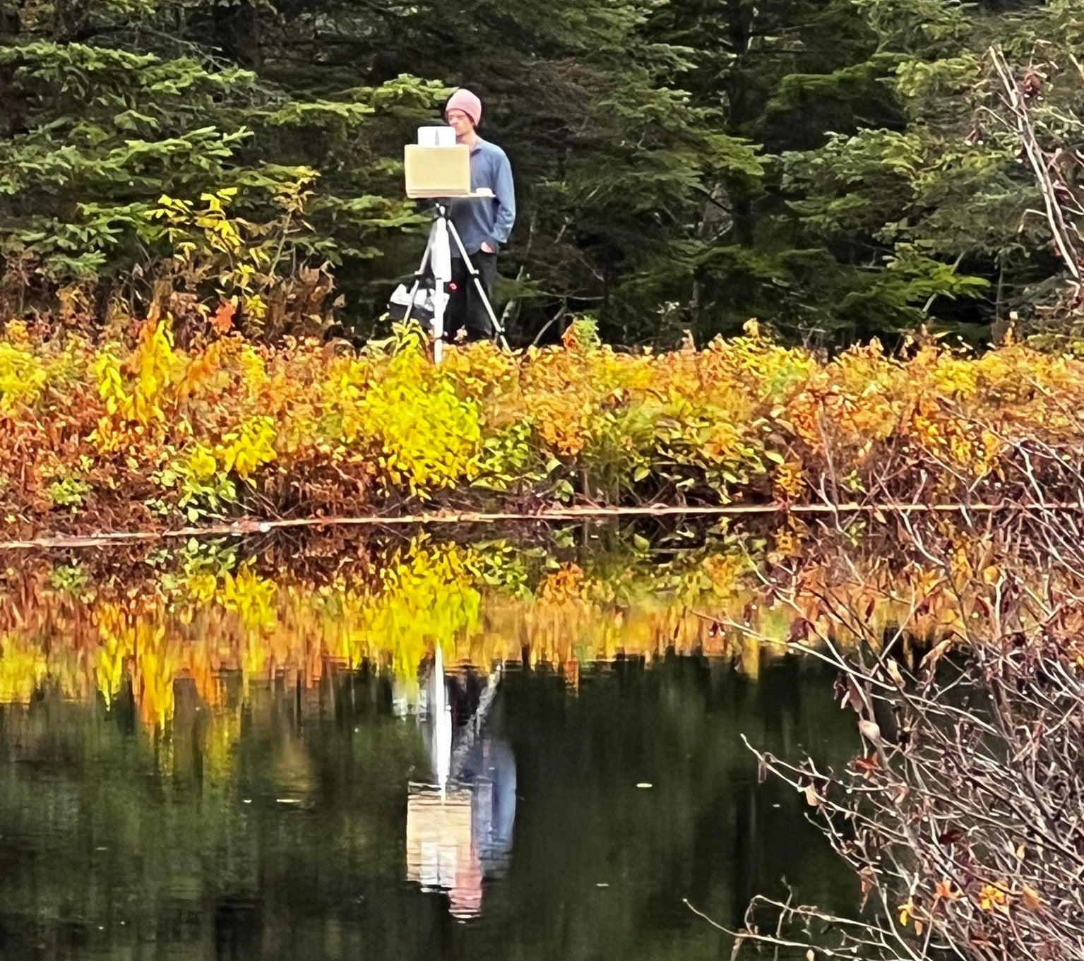 Original Oil Painting, 32 x 48. I had met Janny at a portrait painting session in Quebec city and noticed that she was wearing her Moto Boots. I asked her what type of bike she rides and we would chat about riding. I mentioned to her that I wanted to do a few paintings of her on her motorcycle, and she was excited about this idea. We met one autumn evening at a local vineyard north of Quebec City. It was harvest time at the vineyard, and the sunset was just perfect. We made our way up the very steep and slippery gravel road to the upper parts of the vineyard and captured this perfect moment.